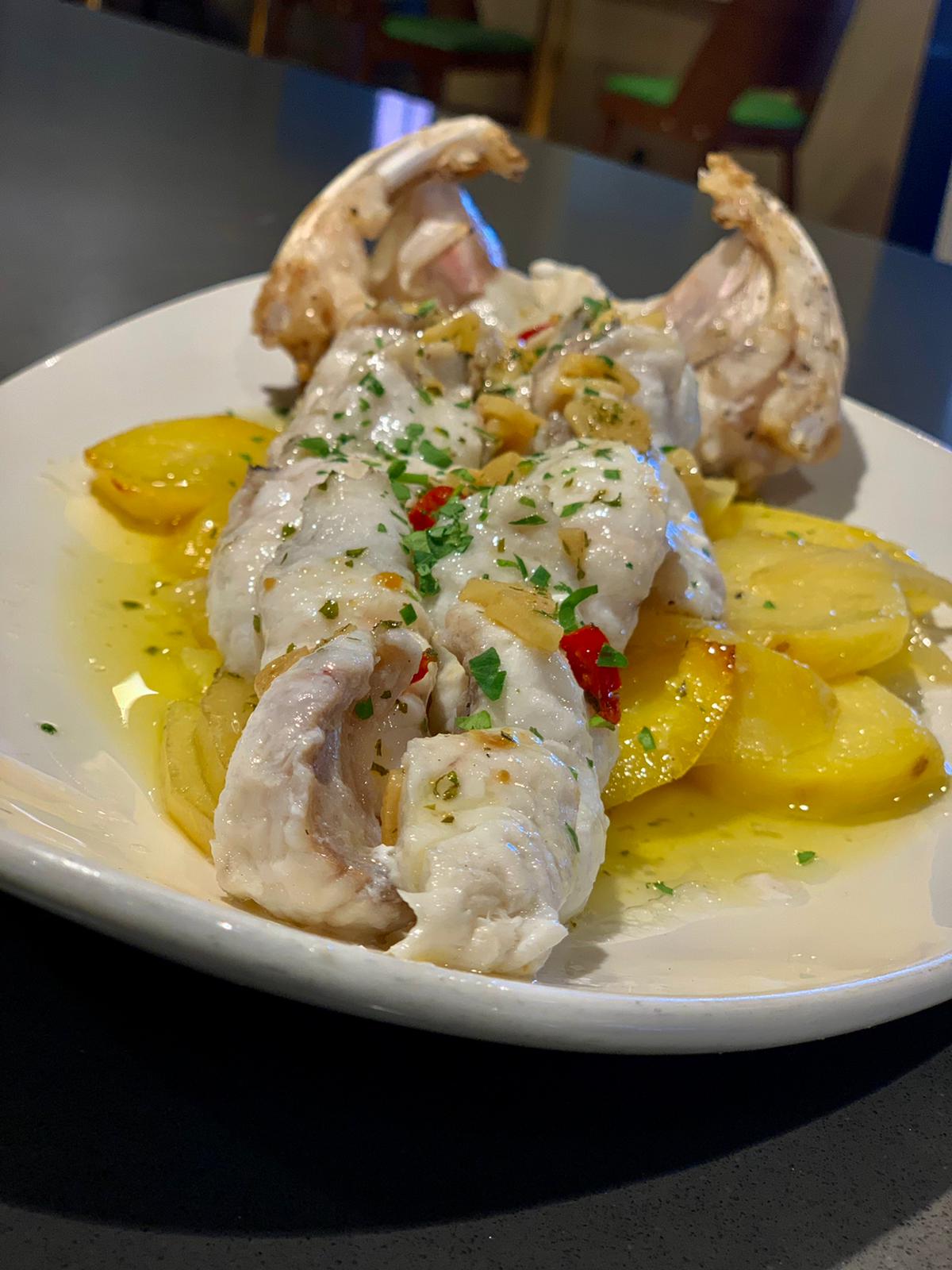 Rape Negro fileteado y a la brasa con ligera bilbaína (precio por ración)